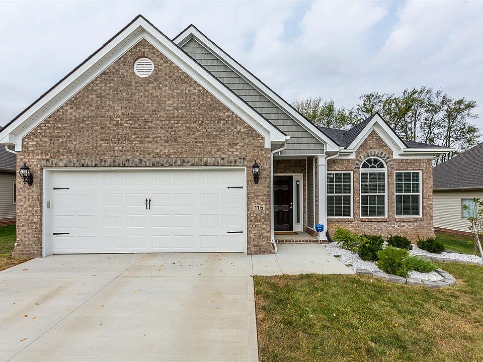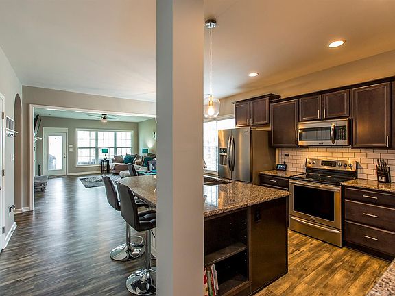 Gorgeous ranch home with beautiful flooring through the entry to kitchen and living area. Kitchen boasts variable height, espresso cabinets with gleaming granite counter-tops and subway tile back splash. Living area features built in book shelving with cozy stone fireplace. Spacious master bedroom with tray ceiling and ensuite featuring large garden tub with separate shower. This home is perfect for entertaining with the covered back patio backing up to green space. You will not want to miss this amazing home!
