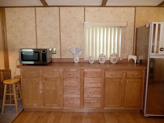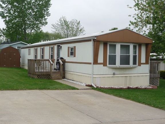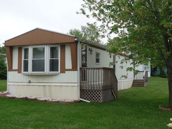 The kitchen hosts cabinets that are standard height with great pull out drawers in the maple cabinets and pantry. The vaulted ceiling opens up the kitchen and living room. There is plenty of closet space in the bedrooms. Updates include: Roof, gutters, vinyl windows, 3 exterior doors, 3 wooden decks, carpet throughout, laminate floor in kitchen, lighting, laminate floor in bath, bath vanity , wood blinds, water heater (behind MB closet). Make is a Skyline and is 70' x 14'. The shed stays. Mobile home tax is $58.80 a year, taxes reflect senior exemption. Lot rent is $255.00 with $10.00 each additional persons. Buyer must be approved by Knollwood Mobile Home Park management. Directions: Straight on Vista, left on Roundtree, right on Knollwood, right on Fieldcrest.