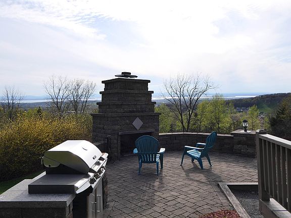 Newly Refinished Hillside Home with Amazing Panoramic Lake Champlain and Adirondack Mountain Views, overlooking St. Albans and Hard'ack Recreation Area - must see to appreciate! Open living and dining area with newly refinished hardwood floors, fieldstone fireplace with ceramic woodstove, cathedral ceilings and amazing Views. Hickory cabinet kitchen with breakfast bar and the same amazing views and newly refinished wood floors. Take in those breathtaking views and romantic Sunsets from the large deck or the custom patio with fireplace, grill station and hot tub area. Full Finished Walkout Basement makes a terrific entertainment area with additional den/office and library shelving. 3 Spacious Bedrooms and 2 full baths and one half bath. Wake up to the amazing lakeview from the second story bedroom, and make into a beautiful Master Suite. Other features include: 1st floor laundry, central vac, built-in storage cabinets, 16 x 20 storage shed, and a 24 x 24 garage.