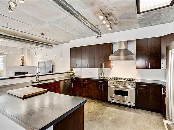 Bright penthouse 3 br plus den, 3 fbath condo in downtown Hoboken! Unit is nearly 2100 sq ft with floor to ceilings windows and doors through-out. Huge kitchen features a Viking 6 burner oven range, Viking hood, Miele dishwasher, Bosch refrigerator, and GE profile wine refrigerator. Kitchen is open to the living and dining areas with NanaWalls, floor to ceiling glass wall systems, leading to a spacious, approximately 350 sq ft deck. Master BR has a custom walk-in closet and en suite bath w dual poured concrete sinks by Concrete Works and radiant heated floors. 2 additional full baths also with Concrete Works sinks and radiant heated floors. 2 additional brs are bright and quiet. Large additional den off of the dining room that features two walk-in closets, w rough plumbing for possible 4th full bathroom. This loft style home also features a gas fire place, laundry room, Stealth Acoustic hidden in wall built-in entertainment system, exposed duct work and concrete ceilings and great storage. 6 year young Red Bridge Building features elevator and solar panels. Rental parking available on the block through the owner for an additional fee.