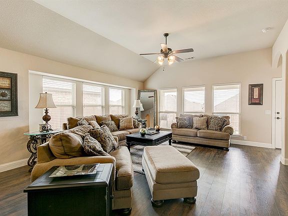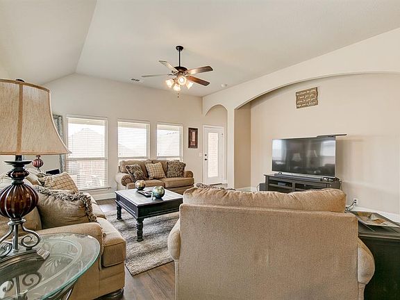 Take a look at this beautiful 3 bedroom, 2 bath home with brick and stone. Gorgeous landscaping greets you out front. The open floor plan makes entertaining a breeze with the a front room suitable for an office or 2nd living area. Hard wood flooring flows throughout the home with carpet in the bedrooms. The kitchen features under cabinet lighting, granite, oversized island and stainless appliances. Split bedroom floor plan has 2 great sized bedrooms, both with large closets. The master features vaulted ceilings and en-suite complete with a jetted tub, separate shower and large walk in closet. The covered patio with a large fenced in backyard is ready for summer gatherings with family. This one won't last long!