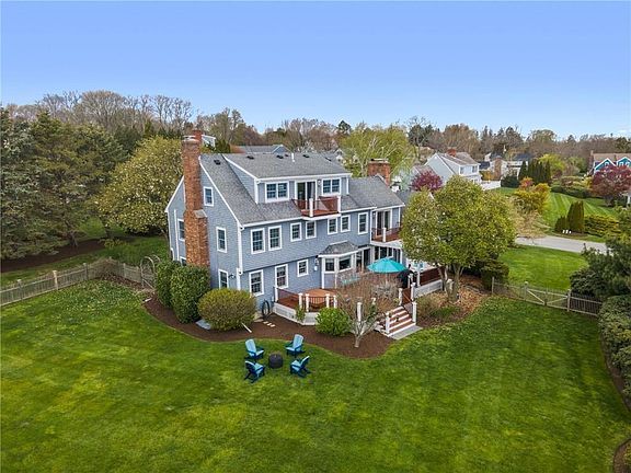 A New England Classic Colonial located on a Meticulously Landscaped property! The house is situated on a 30,000 sq. ft. lot which provide privacy and tranquility. It is a spectacular 4 bedroom 3.5 bath home that is perfect for entertaining. The first level welcomes you with gleaming hardwood floors, a spacious sun filled living room with a wood burning field stone fireplace, a gourmet kitchen with stainless steel appliances that is connected to a family room with a gas fireplace and water views of the Sakonnet. The slider off the kitchen takes you to a private 46x20 deck, a hot tub and stairs out to your expansive fenced in back yard & gardens. The second level has a beautiful primary bedroom with a vaulted ceiling, private bath, walk in closet, wood burning fireplace and a walkout water view deck. There are also three additional bedrooms, a full bath, and lots of closet space. Lastly, the third level has many options, with a large open room that could be swapped out for one of the four bedrooms and made into a private en-suite encompassing the entire floor. It also could be a great room, an office or a gym with a full bath. This level has another water view deck overlooking the Sakonnet. Other features include central air, AC split units , an outdoor shower, a heated lower level perfect for a recreation room, a workshop, and plenty of storage. With a few minutes walk to the water this home, with its' picturesque setting, is one you don't want to miss!!!!