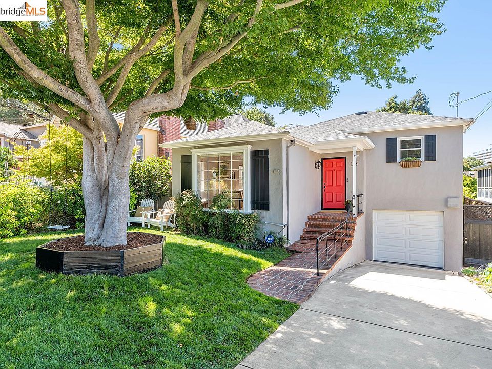 This Piedmont Avenue split-level gem with ample space & comfortable living coaxes you Home! The front lawn encircles a specimen Japanese maple & a special garden bed offers up the perfect spot for homegrown veggies galore. The freshly painted 4 BR/3 BA interior gives everyone a place to be. The main level welcomes family & friends to the expansive living room, a spot for memorable meals in the dining room, & a well-appointed kitchen spilling out to a deck & south-facing garden spaces beyond. The upper level contains an alcove in which to do schoolwork, 3 sunny bedrooms, & 2 beautifully remodeled bathrooms one of them en suite. The lower level provides a second primary suite with glass sliders leading out to a patio & lush lawn. A Family Room with a wet bar brings it all together for game night. The garage offers interior access, a laundry space, an EV charger, & access to loads of storage space. Get away to the detached office & immerse yourself in the peace & beauty of the surrounding gardens. With a deck, multiple patios. a lush lawn, & a hot tub, there is truly space for all! At the other end of the road, Piedmont Avenue delights with eateries, enchanting shops & boutiques while practical stores & services line the mile-long avenue. Indeed, what a marvelous place to call Home!
