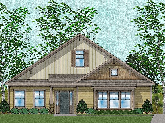 The Fairchild is a one-story, Craftsman-style home that features three bedrooms and two baths. The kitchen has a large peninsula with bar top which is open to the family room and an arched pass-through leads to the formal dining room. The primary suite overlooks the back yard and also has access to the covered porch. The primary features a large walk-in closet, linen and water closet. The secondary bedrooms share a full bath and are adjacent to the laundry room. Options include a fireplace in the family room, an outdoor fireplace, and a walk-in shower in the primary bath.