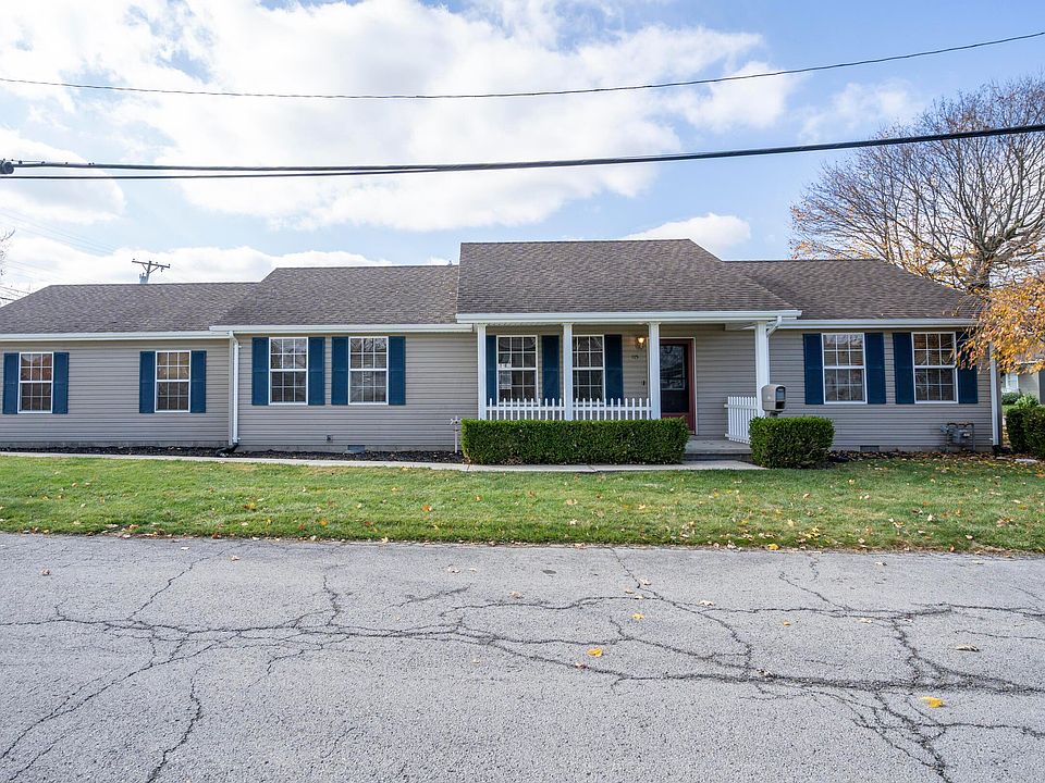This well maintained home is perfect for those looking for very little yard to maintain. Nestled within walking distance of major retailers, restaurants and shops, this is a wonderful home in the heart of Washington CH. Enjoy the evening sitting on your beautiful front porch or inside your large living room with vaulted ceilings and wood beams. Crown molding and wood ledges adorn the home, along with a spacious kitchen and dining room. A walk in shower is in the master suite while a bath tub to soak in is in the guest bath. Large bedrooms with a lot of closet space is another great feature of this home. There is also a large 2 car attached garage for parking and additional storage. Outside you'll find a vinyl fence for privacy and a Generac home generator. This s a great deal!