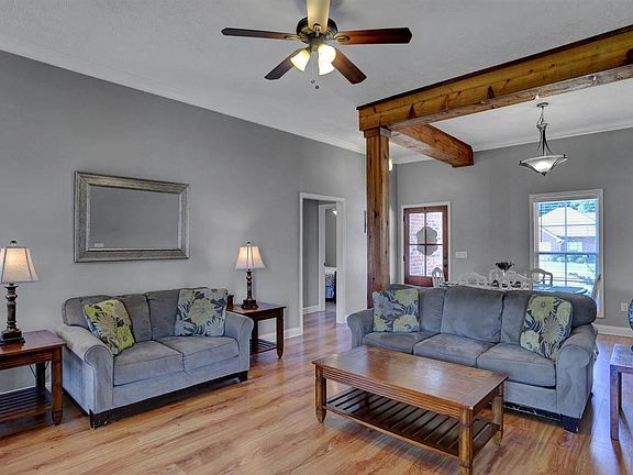 Welcome to your new home in Greenfield Station! This beautiful 3 bedroom/2 bath split plan home sits on a corner lot providing a spacious yard. As you enter, your eye will be drawn to the gorgeous wood beam feature separating the formal dining area from the living room. The gas log fireplace and laminate wood floor make the living room a warm and inviting place. Stunning backsplash, granite countertops, and plentiful cabinets will make the kitchen your favorite room. Laundry area between the kitchen and garage. The master suite features a trey ceiling, 2 walk-in closets, dual sinks, a large jetted soaker tub, and separate shower. Two additional bedrooms and a bathroom are on the opposite side of the house. A covered patio and fully fenced backyard will make for a nice place to enjoy time outside. Don't miss this! Call your realtor today. 100% USDA Financing Available.