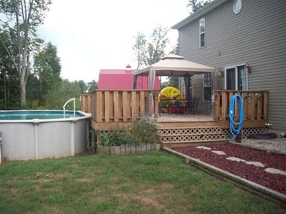 Enjoy relaxing on your covered front porch of this very spacious home. Home sits at the back of cul-de-sac on 2.27 acres. Large rooms throughout! Master bedroom with whirlpool tub and seperate dressing room or computer room. Large country style eat-in kitchen with a formal dining room. Back deck with an 18x36 above ground swimming pool. Park like back yard outlined in trees for your privacy. All room sizes are approx.
