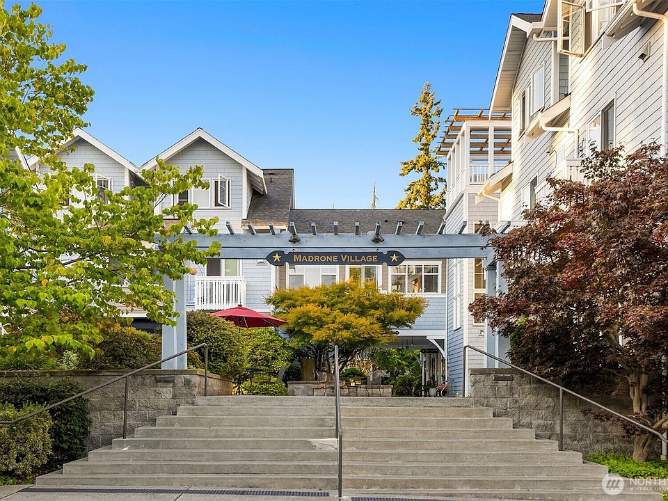 Welcome to Madrone Village! This spacious 2-bedroom, 1.5-bath, two-story condo offers a wonderful layout in the heart of Winslow—just steps to shops, cafés, restaurants, and the ferry for effortless island-to-city living. Beautiful vertical-grain fir accents warm the interiors, while fresh paint, new carpet, and updated bathroom flooring make it move-in ready. Enjoy a private balcony with peaceful territorial views, plus the convenience of a private garage and secured entrance. With style, comfort, and unbeatable walkability, this condo is ideal for year-round living or the perfect in-town retreat.