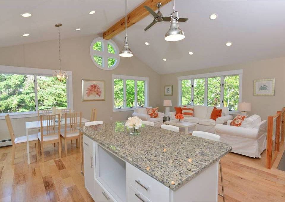 In-town completely renovated 4BR, 3.5 Bath home with large yard, deck and close to Mackerel Cove! Vaulted ceilings, open living concept, sun drenched rooms. Stainless and granite kitchen, master suite, 2 car garage, workshop and in-law potential!