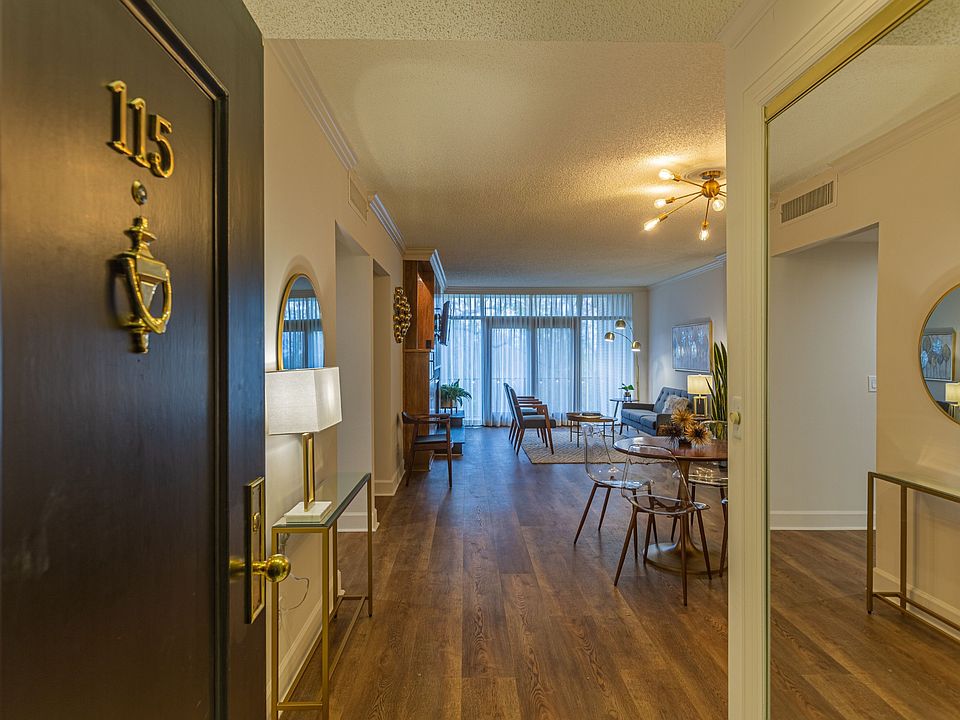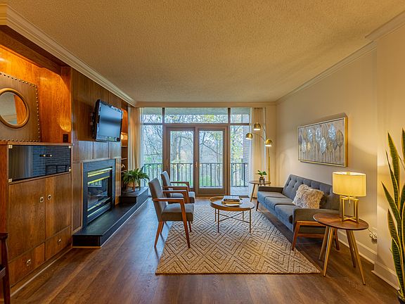 Well Appointed Mid Century Modern 1st Floor Unit. Complete remodel, LTV Flooring, all new light and plumbing fixtures, granite, stainless appliances, beautifully done, Private balcony with Percy Warner views, large open plan living/dining w/fireplace, master w/large walk-in closet and double vanity, 2nd BR for guests or office/study, W/D connections in unit or use free W/D in basement