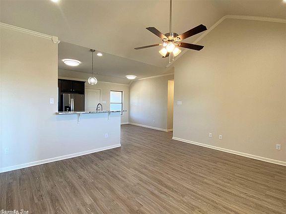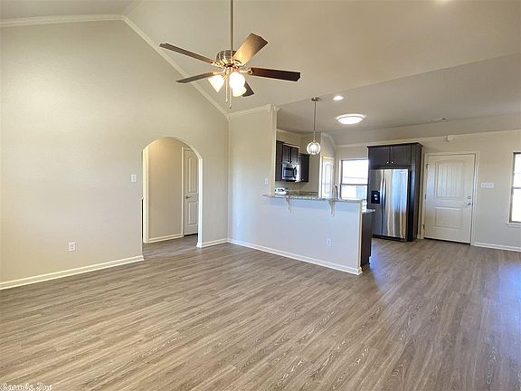 New construction that is spotlessly clean. Yard will be sodded and wood privacy fence installed as weather permits. Granite counter in kitchen and baths. SS appliances including nice fridge. Breakfast bar, pantry closet and lazy susan cabinet. Luxury vinyl plank flooring in living, kitchen and hallways. Tile in baths and laundry. Vaulted ceiling in LR. Master features a tray ceiling and recessed lighting. Twin sink vanity and extra wide shower/seat. Energy efficient roof decking with foil back.