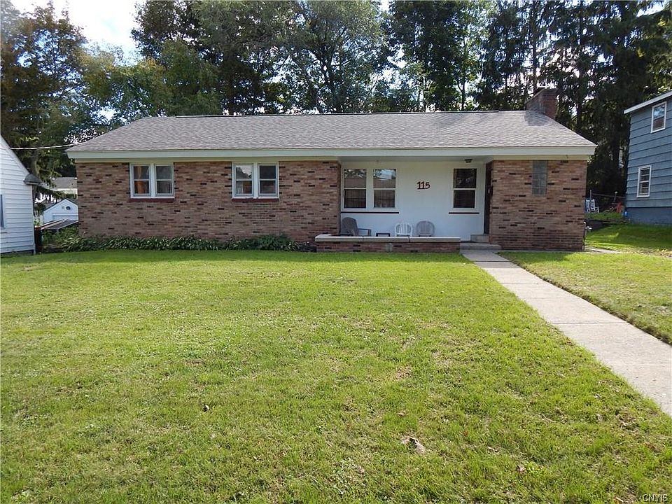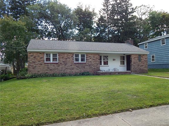 One level living at its best! This spacious ranch has 3-bedrooms and 1-full bath, an eat-in kitchen, bright spacious dining room, large living room with a wood burning fireplace & hardwood flooring. Old world charm & character throughout. Brick exterior w/covered front patio area. Tranquil enclosed back porch overlooking lovely terraced yard is a great place to have your morning coffee on the weekends. The large backyard is a great place all your outdoor activities, complete with a built-in firepit & shed. Full dry basement with workshop. New roof, newer hot water tank and new 100-amp panel with circuit breakers. The entire interior has been painted. All appliances are included. Nice quiet street conveniently located near shopping, dining, schools, parks, bus line and downtown Syracuse.
