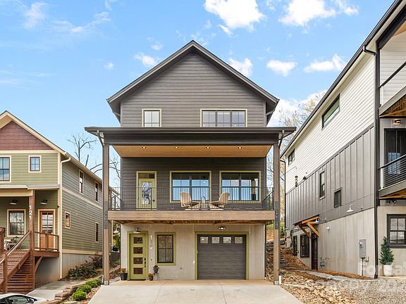 High quality newer construction with a studio apartment (or flex space / office) with private entrance located in convenient, East / West Asheville on a small private road away from typical city traffic. Throughout the home you will find detailed trim work and luxury appointments. From the covered front deck you will see Downtown Asheville and also catch magnificent sunrises. Out back- another covered deck and level, fenced back yard invite you to enjoy a meal, connect with friends and play. The kitchen is equipped with a gas range / double oven, abundant cabinet and countertop space and offers a delightful walk-in pantry with custom shelving. Stay cozy warm even on the coldest days with a beautiful, iron, gas stove and gas furnace. Upstairs there are three bedrooms with the primary bedroom having the best views in the house of the city and treetops to the east. Come see how well this home lives. Showings begin on December 7.