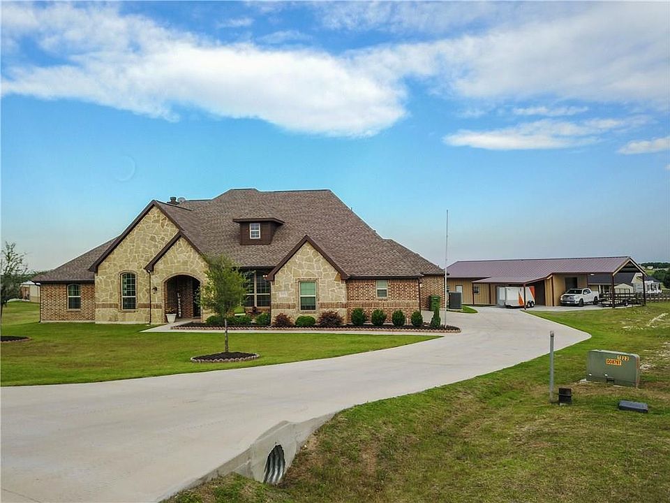 An AMAZING HOME, WORKSHOP, & ONE ACRE PROPERTY! Beautiful open KITCHEN-LIVING area with both breakfast dining area & counter bar. Custom cabinets with GRANITE countertops & stainless kitchen appliances....MEDIA-GAMEROOM...STUDY...FORMAL DINING or Extra STUDY...LUXURIOUS MASTER SUITE with GARDEN TUB, SEPARATE SHOWER, DUAL VANITIES...OUTDOOR PATIO WITH FIREPLACE is just the perfect place to relax, watch the countryside view, & share time with a loved one...MAN'S DREAM PROPERTY...3 CAR ATTACHED GARAGE, SEPARATE WORKSHOP for all the boy toys with 2 covered outdoor work areas or additional parking...workshop even has a perfect spot to build a Mom-In-Laws Quarters. THIS IS A FOREVER HOME!