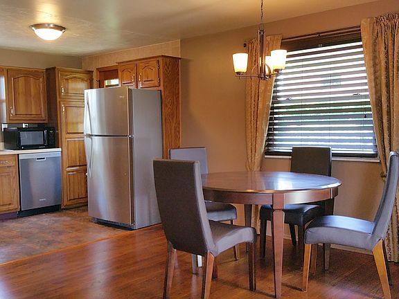 This stunning 4BR, 2Bath Split entry home is move in ready! Open floor plan design. Beautifully restored Hard Wood floors compliment the LR and DR. SS appliances, oak cabinets and KIT pantry. Custom blinds, modern fixtures and built in shelves, all come standard. The finished lower level Family room is freshly painted with new carpet. Don't miss the add'l BR featuring a cedar lined walk in closet. Entertain or relax on the extra large covered patio overlooking the private, fenced in backyard. Shed included. Laundry room equipped with W/D. Ample storage in the oversized garage. Additional tool room features a workbench and walk out access to the rear yard. Driveway accomodates two cars with additional on street parking available.