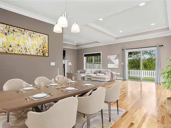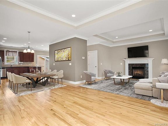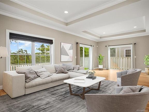 This sleek and spacious three-bedroom, two and a half-bath townhome is a dream come true for anyone who prefers the freedom of an open-plan layout. The sweeping and loft-like first level takes in a massive living room with a fireplace, a spacious living and dining area, and a kitchen with tons of cabinet and countertop space, as well as a double-door stainless steel fridge. Gorgeous hardwood floors run throughout the entire level, along with modern recessed lighting discreetly tucked away into the high ceilings, which allows the space to breathe and makes it a perfect setting for entertaining and hosting. A large, 210-square-foot patio just off the first level overlooking the community's beautifully landscaped grounds provides even more space to relax and unwind. Upstairs, you'll find all three bedrooms, including a massive master suite with ample closet space, as well as its own, private master bathroom with dual sinks, and a separate guest bathroom. The finished lower level, meanwhile, opens into a huge two-car garage, and offers endless potential as a bonus room, play area, or rec room. During your downtime, you also couldn't ask for a better location: Several of the area's best golf courses, country clubs, and public parks--including 300-acre Waveny Park--are just minutes away.