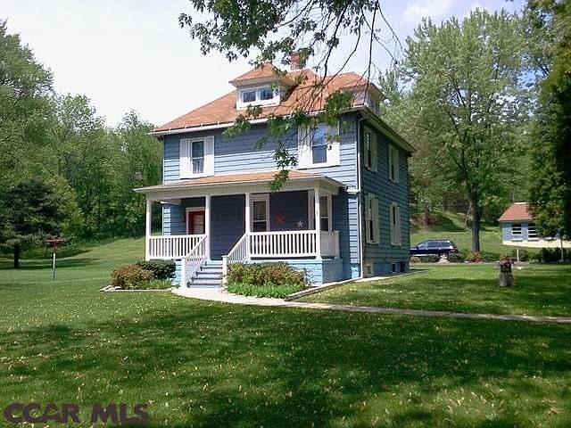 The vicinity of tranquility. Relocate to peace & quiet in the hide-away setting of this stately farmhouse perfectly positioned on 3.21 secluded acres in the Tyrone Borough. This property is adjacent to Reservoir Park, the community pool, fishing & roller hockey. This is truly a special property & has not been available for purchase since 1968. Highlights include a welcoming front porch, covered rear porch, detached 2 car garage PLUS every man's dream a workshop with an attached 48x48 Morton building with 3 skylights & 10x10 overhead door. The interior boasts an inviting oak kitchen offering excellent storage even a recycling center & a breakfast nook with banquette. The family room can easily be converted back to a formal dining room. There are 4 bedrooms, 1 full & 2 half baths, central air & 200 Amp Service. This one of a kind property offers tons of room for family fun. Town convenience with country charm.