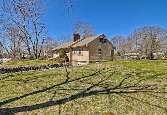 Charming custom built Cape-style home features large fireplaced living room, Dining room with over-sized custom built-in hutch. Pocket French door leads to eat-in cabinet kitchen with more built-ins and pantry. Heated family room off kitchen. Laundry on first level. Ceramic-tile bath. There are hardwood floors in foyer and under WW carpet in living room, hallway, master bedroom and Bedroom 2. Second level features two unheated rooms once used as bedrooms. Both have built-in dressers. Additional room good for storage. Large unfinished basement with high ceiling. One car garage under with parking for 2 to 3 cars in driveway. Architectural-shingle roof approx 10 years old. Home is located on an exceptionally large level lot with plenty of room for future expansion. Quiet street close to public transportation and shopping