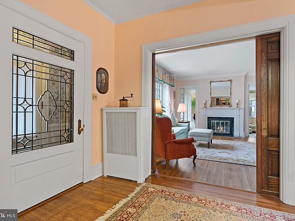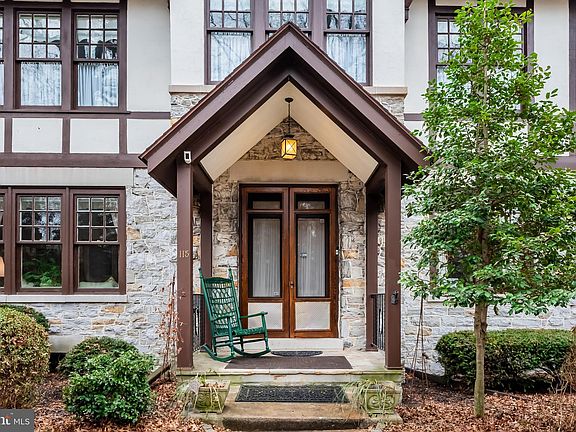 This spectacular three-story home, circa 1919, is perched proudly atop a nearly one acre park-like lot in ever-popular Bellevue Park. The handsome facade boasts stone and stucco walls with beam work and half timbering that is the hallmark of the English Tudor Revival style and is capped with numerous gables and large stone chimneys. Double wooden doors lead into a marble floored foyer. A beautiful leaded glass door opens to this 4200+ square foot home with spacious and gracious rooms throughout boasting high ceilings, large windows, deep baseboards and many with hardwood floors. The large center hall is flanked by a wood paneled Library with pocket doors, floor to ceiling built-ins and a fireplace, and by a welcoming Living Room with pocket doors, crown molding, large windows with deep sills and a gas fireplace. French doors from the Living Room open to a Family Room surrounded by windows which adjoins the grand formal Dining Room with double French Doors, elegant floor to ceiling leaded glass front china cabinet and a spectacular antique crystal chandelier. Patio doors lead to a wonderful covered stone porch overlooking the private yard and gardens and also hosts a built-in Holland gas grill with hood. The delightful Breakfast Room is adjacent to an updated St. Charles Kitchen with tiled backsplash and floor, granite countertops, stainless appliances including a viking cook top and double ovens . A half-bath with pedestal sink completes the first floor. An open staircase ascends to the upper levels and features a gorgeous leaded glass window on a landing washing the stairway with natural light. A spacious center hall welcomes you to 4 large bedrooms with California closets. 2 full tiled baths too! The third floor offers lots of space for a private getaway or guests and features a window seat, a built-in glass front storage closet from Harrisburg's Radcliffe and Schwartz Men's Store and a half bath. There is also abundant storage on the 3rd floor including a cedar closet. The walk out lower level houses a cheerful laundry room, a workshop and lots of storage space. The spectacular, nearly acre lot was once home to grape arbors believed to be part of the original Belle Vue Winery and now boasts a splendid Dawn Redwood tree, Crepe Myrtles, Dogwood, Magnolia, Rhododendron and gardens with perennials sure to provide bursts of color throughout the growing season. The center garden features a 3 tiered fountain and arched trellis with clematis vines and roses. A patio tucked amongst thoughtfully selected plantings provides a serene setting. There is also a detached two-car garage. Low annual fee to The Bellevue Park Homeowners covers care of common areas which include green space, a pond and a Community Building . The current owners have been conscientious stewards of this very special home which provides wonderful space both inside and out for relaxing and entertaining. Come see and prepare to fall in love!
