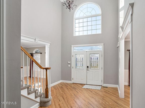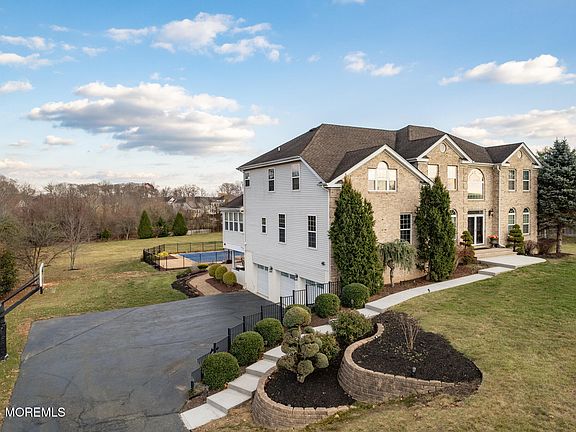 Whether you travel by NJ turnpike, GSP, I-195 or I-295, your stress free oasis is only minutes away into the country of the glorious Garden State. Cream Ridge, originally named for its dairy farms, is now known for its horse farms, tree farms, wineries, breweries and distilleries. Also known as Upper Freehold township, is the location of this one owner, immensely loved home. Set on 2 acres is this 4 bedroom, 4.5 bathroom, colonial home with an unbelievable outdoor living space. Pull into the driveway and follow the newly installed front walkway to the double front door. Step inside the 2 story foyer and immediately notice the new freshly refinished hardwood floors. To the right is an expanded formal sitting room which offers plenty of space for a gathering of friends for tea or card night. On the opposite side of the foyer is the formal dining room that conveniently has a wine butlers pantry with a wine cooler and cabinets. The eat-in kitchen offers refinished white cabinets, granite countertops and new 5 gas burner stove and microwave. A sliding glass door provides access to the low maintenance Trex deck with stairs to the immense paver patio. Off of the kitchen is the half bath, laundry room and access to the 3 seasons room with wrap around windows. Open these windows, feel the cross breeze and have the best nap of your life! Also off of the kitchen, double doors lead to the expansive media room (with new carpet) that is set up for a screen and surround sound speakers. Perfect for movie nights with family and friends. The 2 story family room is vast in size with windows from the ceiling to the floor. The gas fireplace was built to allow the conversion to wood burning, should you choose to do so. If you work from home, you will enjoy the office with large windows, crown molding and chair railing. On the second floor, double doors invite you inside to the primary suite featuring a vaulted ceiling, sitting area, storage cubbies, a deep walk-in closet with built-ins and an ensuite with 2 separate sink vanities, stall shower and massive soaking tub. Also on the same side of the home is a guest bedroom with easy access to a full, 2 sink vanity, guest bathroom across the hall. At the opposite side are two additional guest bedrooms that can share a full bathroom in between the rooms. On to the fully finished basement... Half of the basement, with new carpet, makes a great play space. The other half, with engineered wood flooring, provides an epic rec space... fit for a pool table, foosball table, hang up a large screen tv or projector and enjoy the sport games with in-cailing and wall speakers. A full bathroom, with heated floors, is super convenient on this level. As well as the full sized refrigerator, sink and dishwasher. This walk-out basement doesn't feel anything like the typical basement. It is super bright with windows and the 2 separate doors to the massive, 2000+ sq.ft., paver patio. The outdoor kitchen is impressive with a peninsula bar and granite tile providing plenty of counter space allowing a great food spread for your party guests. Relax on cool evenings in the oversized 8 person hot tub, Sundance Maximus 880, 560 gallons and 65 jets. On the opposite side of the patio is an extraordinary stone fireplace. This entire space looks over the enormous inground saltwater pool with water spitters and waterfall feature with LED lights and the huge backyard that backs to woods. Other fantastic features of this home is the natural gas whole house generator Kohler 20,000Kw with auto standby, electric fence around the entire property, as well as other smart home features.
