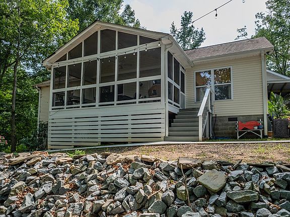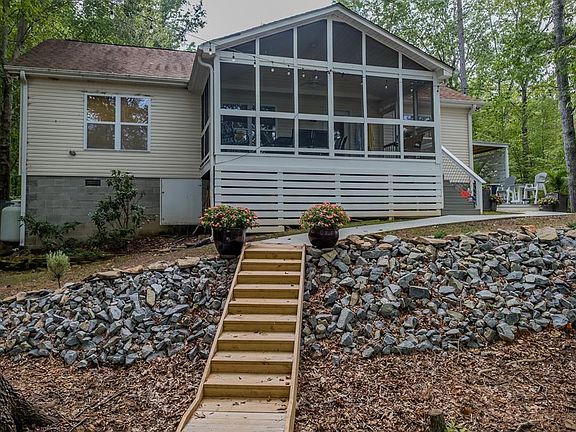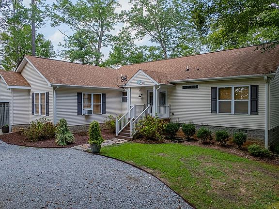 Beautiful waterfront home on .98 acre lot with 163' at Dominion Water line! Many new upgrades including side deck patio with outdoor shower, new walkway to boathouse and new sundeck added to boathouse. Home features 3 bedrooms, 2 baths, large family room with fireplace, granite counter tops in kitchen, garage converted into rec room and sleeping areas (not heated), permanent stairway up to attic which provides lots of storage. Circular driveway has been recently re-graveled and nice landscaping outside. One of the best features is the screened porch with views of the lake. Conveniently located only minutes from Food Lion, Ace Hardware, Pharmacy, Restaurants & Gas station. Seller will provide a 1 year home warranty at closing (not to exceed $550) with acceptable offer! This one will go quickly. Schedule your appointment to see this today!