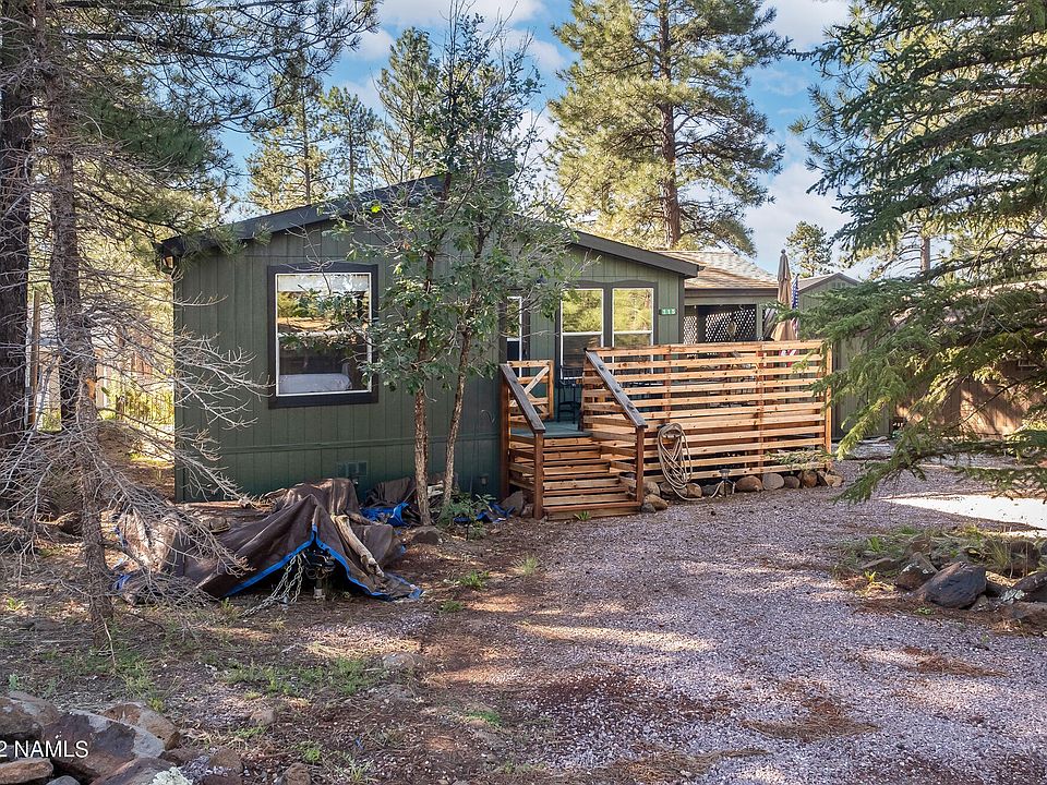 Don't miss this well maintained doublewide manufactured home. Barnwood accents thruout, fresh paint, Privacy deck on side of home, extra large shed, off the master bedroom you'll find a new sliding door that leads to a large covered trex deck. Perfect for your morning coffee. Upgraded baths, kitchen is upgraded with new appliance, counter tops, home has double pane windows, central heat and a newer wood stove Guest bedroom is on the frontside of the property, an additional room you could call your den, office or bedroom, entry thru a large barn sliding door for your privacy. Home is ready for you and your clients to preview. You won't be disappointed.