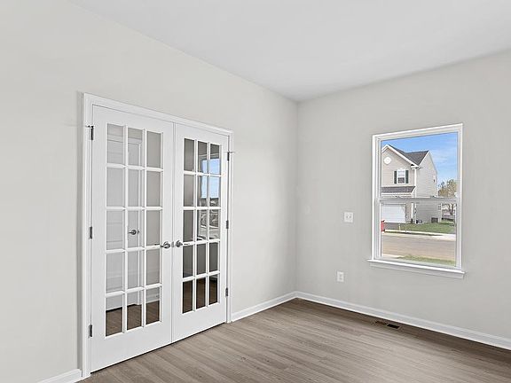 Apart from our Americana series, this contemporary, two-story home design offers up to 2,853 square feet of finished living space. As you enter the Rockford, you're introduced to a front room and foyer, which can be closed with double glass doors for a more private den. Continuing through the home, you enter a large family room open to the breakfast nook and kitchen. This area is airy and light due to the additional windows and 9ft high ceilings throughout the first floor. All the bedrooms, including the master, can be found on the second floor of the home. The master suite features a spacious bathroom and closet of just under 70 square feet.Opt in for a finished basement to complete the home and maximize your living space.Schedule a tour to call the Rockford home today!