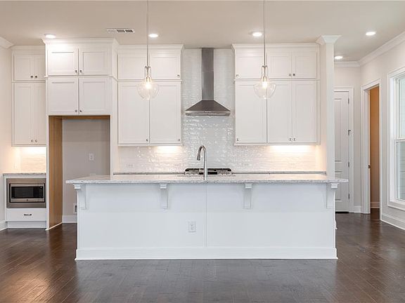 - Kitchen Features: Eat-in Kitchen, View to Family Room, Kitchen Island, Pantry Walk-In, Solid Surface Counters, Cabinets White