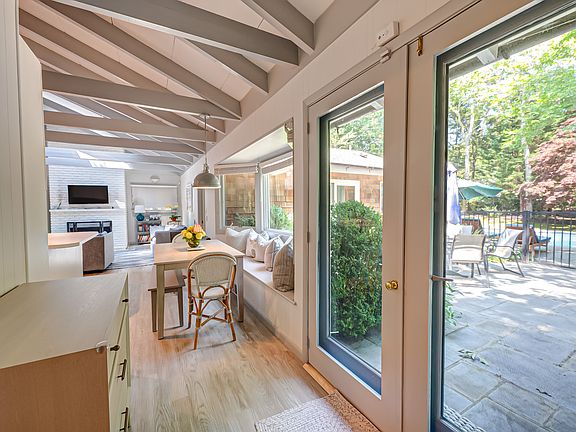 A prime location and lush flowering perimeter is the perfect setting for this completely charming 3 bedroom, 2 bath beach house. An open floor plan with vaulted beamed ceilings, skylights, and fireplace adjacent to a covered porch is a delight to enjoy in all seasons. The bright white kitchen is equipped with stainless steel appliances and lots of counter space. A dining banquette with picture window looks out to the magnificent pool, patio and colorful gardens. Truly a destination location on the most coveted lane in Lion Head Beach, enjoy access to a private beach, located just down the street.
