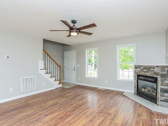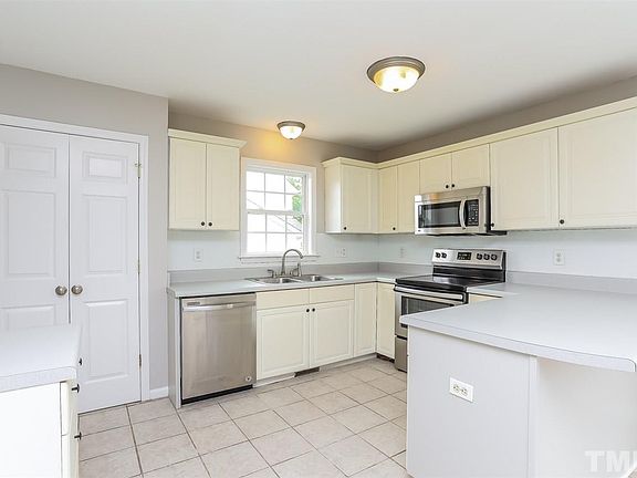 This Knightdale cul-de-sac one-story home offers stainless steel appliances, a fireplace, and a deck. Upgraded features include fresh interior paint and a new stainless steel range.
