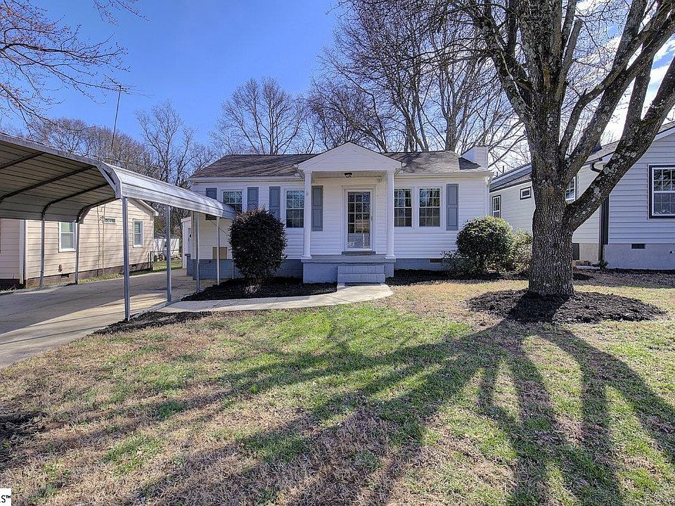 Location-Location-Location! Minutes to downtown Greenville, Fluor Field, West Greenville dining/shopping and everything Greenville has to offer! The adorable 4 bedroom, 2 bath already has many upgrades including beautiful hardwoods, updated kitchen, gas logs, replaced windows, jetted tubs, gas grill hook-up, huge attic storage and added deck and carport! The backyard is perfect for entertaining with the large deck, firepit and additional covered spaces. Don't let this opportunity pass you by!! Home is being sold 'as is'.
