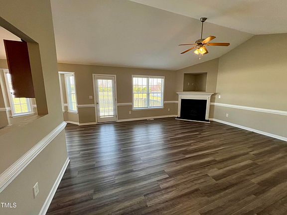 Ranch style home on a spacious lot with a country feel! Front porch entrance into foyer opening up to the large family room with corner fireplace and cathedral ceiling. Bay window dining room beside the kitchen with appliances. Laundry room / pantry with closet. Owners bedroom featuring a cathedral ceiling as well with walk in close through bathroom with shower & tub. 2 additional bedrooms plus hallway bath. Back door with walk out wood deck overlooking the huge back yard