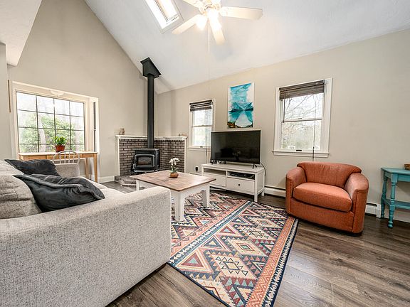 Welcome home to 115 Jones Road: a 3 bedroom, 1 1/2 bath home in Mystic Lake Hills that has everything you are looking for. Its cathedral ceiling, skylights, and so many windows offer natural light throughout the day. Recent updates include an Anderson storm door, new chimney, oil tank, carpet, and an A/C mini split unit. It has a back-up generator hook up, full basement and added extra parking for your summer guests. With three heating options - mini split, oil, or a wood burning stove - your living room will be a great gathering space. It sits on a half acre with terrific fenced-in outdoor space, an expansive deck, patio, fire pit, a storage shed and garden beds. Passing title V system for a 3 bedroom home. Nearby deeded rights to Mystic Lake and walking trails make this a very desirable neighborhood.