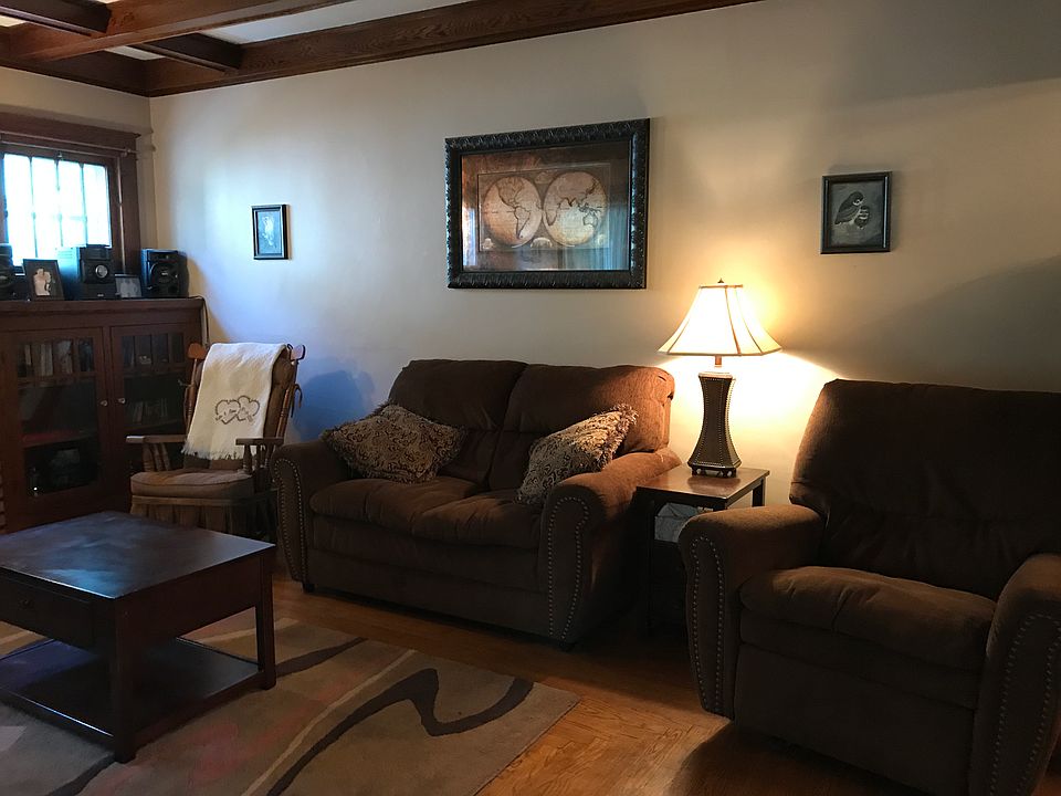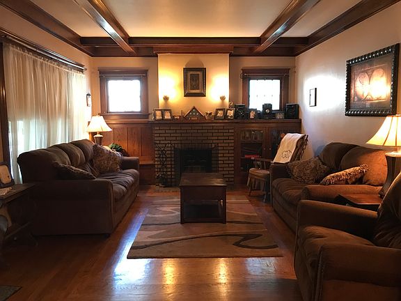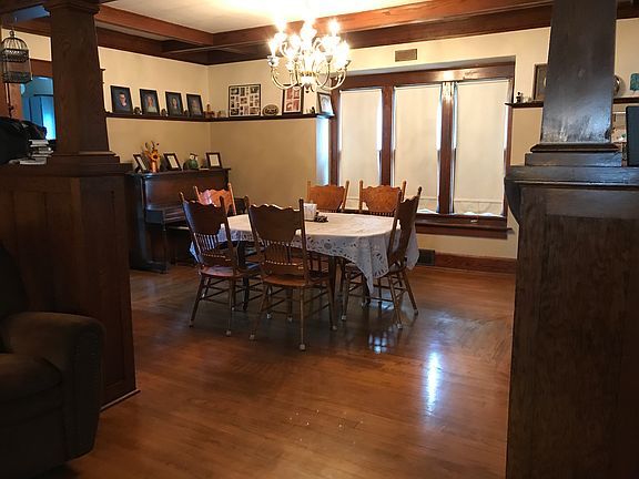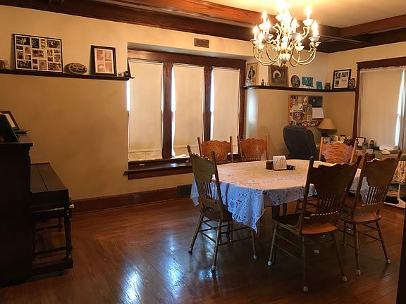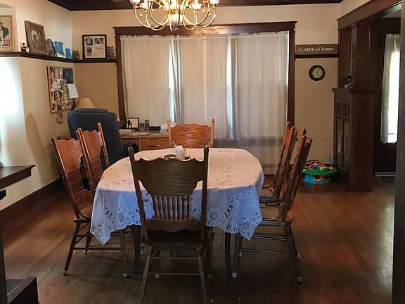 Beautiful older home in Burlington built in 1915. Located on a nice, quiet street with sweet neighbors, this home is a 3 bedroom 2.5 bath bungalow with a spacious living room, dining room, and kitchen, working and maintained open fireplace, 3 built in glass cabinets, a beautiful built in pantry, full finished basement with living room, laundry room, bathroom, and bedroom/office, wrap around porch, fenced in backyard with a fire pit, a large covered deck, a new lofted shed, and detached 2 door garage with attic space. Both bedrooms upstairs and the bathroom all have large walk-in closets. Would be perfect for a new couple looking for their first home, a family looking for their forever home, or an older couple looking to retire in a nice, small town. Will come with a new dishwasher (bought 2015), a big swing set in the backyard, and a newly fixed porch foundation (2016) that has a warranty and is transferable to new owners.
