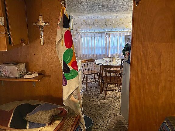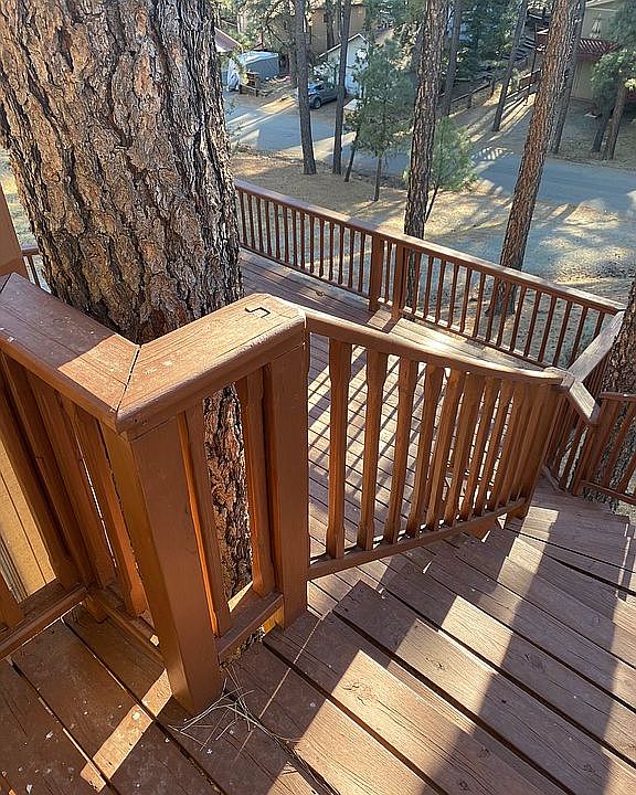 This is an adorable, unique cabin that comes with two lots. The kitchen/dining room area is a mobile home that the cabin is built around. The other part of the cabin (living room, bedroom, master bath) was built out later. This is a great home to get away from the desert heat or an investment property.