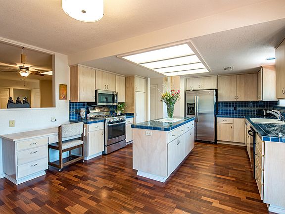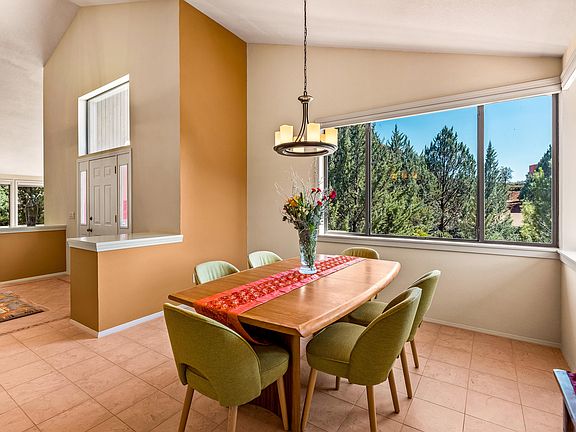 This home is nestled between huge mature pines and junipers that supply privacy and beauty! Central Sedona location with feel of living in a forest! Majestic living room has Cathedral ceilings and windows that grasp the Red Rock views framed by the trees. Home has an open airy feel with an easy flowing floor plan. Kitchen has stainless steel appliances, large island, built in desk, and sliders to the sunset deck. Large master bedroom boasts a huge walk in closet, dual vanities, jetted tub, and separate shower room. Guest bedroom has a private bathroom with cheerful tile. A large office could be used as bedroom. Off the kitchen is a cozy den/living room with fireplace and wood accents. The 2nd deck is covered and shady for great summer entertaining! Near golf, tennis and Oak Creek.