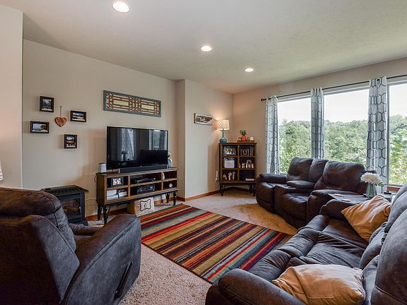 Tired of dated houses and bad locations?? Well here it is: the perfect house in the perfect location!! NEW neighborhood filled with NEW houses, with side-walked streets to walk on, all in a perfect location that's just 5 minutes to town! Very desirable north-side location prized for its proximity to the Highroad, 65, schools, and shopping. When you walk in the front door you are greeted by a wall of windows showcasing the awesome woodsy view! The floor plan is open and the color scheme and materials are lovely. Extremely clean and well-maintained, this one-owner home is like new! 3 bedrooms PLUS an office! All measurements approximate.