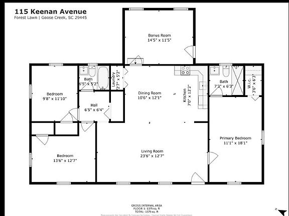 - Total interior livable area: 1,375 sqft