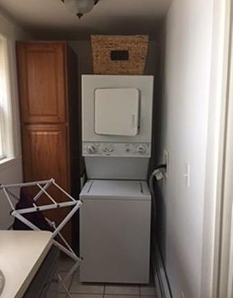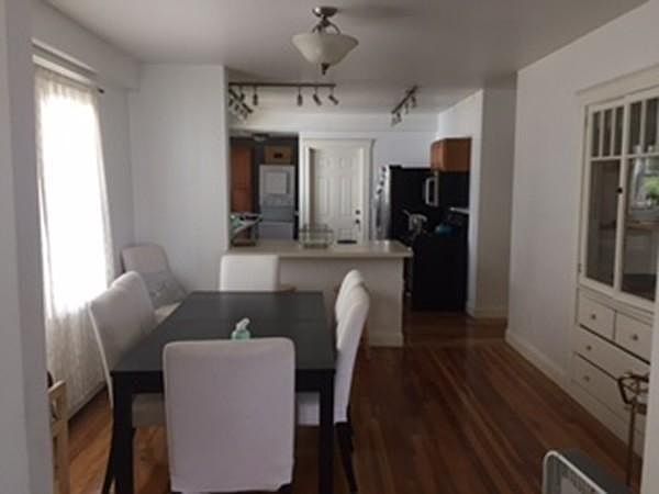 This amazing rental unit is located steps from Chandlers Pond, Newton Commonwealth Golf Course and shopping, etc. The interior was renovated between 2011 and 2013. The kitchen has ceramic tiled floor, stainless steel appliances, granite counter tops and an alcove with Bosch washer/dryer unit. The layout is open to the dining room/living room giving the unit a very spacious feel. There are gleaming hardwood floors in the LR/DR and Bedrooms There are two good size bedrooms - the third is on the smaller size and there is one full bath. Garage parking and a second off street space is included in the rent. Tenant pays all utilities except water and sewer. Available 8/5 First, Last, SD and one months fee rental fee due at lease signing.