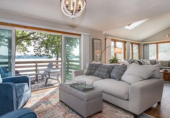 Your waterfront oasis with stunning in-ground pool awaits! Enjoy spectacular views & direct water access with 2 floors of living in this beautiful home. Many updates this past year including all new stainless steel appliances (in both kitchens), flooring, fencing & more. Upper level features living room with vaulted ceilings, 2 skylights & walls of windows to enjoy the beautiful views. Kitchen is bright, spacious & open to the entire living area with sliders to waterfront deck. Primary bedroom has bay window to enjoy gorgeous sunrises & double closet. Additional bedroom (currently doubling as an office) & updated bath round out the upper level. Downstairs features spacious, beautifully decorated suite for in-laws or primary suite with full kitchen, tiled bath with laundry & sliders leading to patio with jacuzzi, fenced-in backyard with shed. The waterfront pool features a newer liner & new privacy fence. Easy highway access & short walk to Lincoln Woods nature trail. Don't miss it!