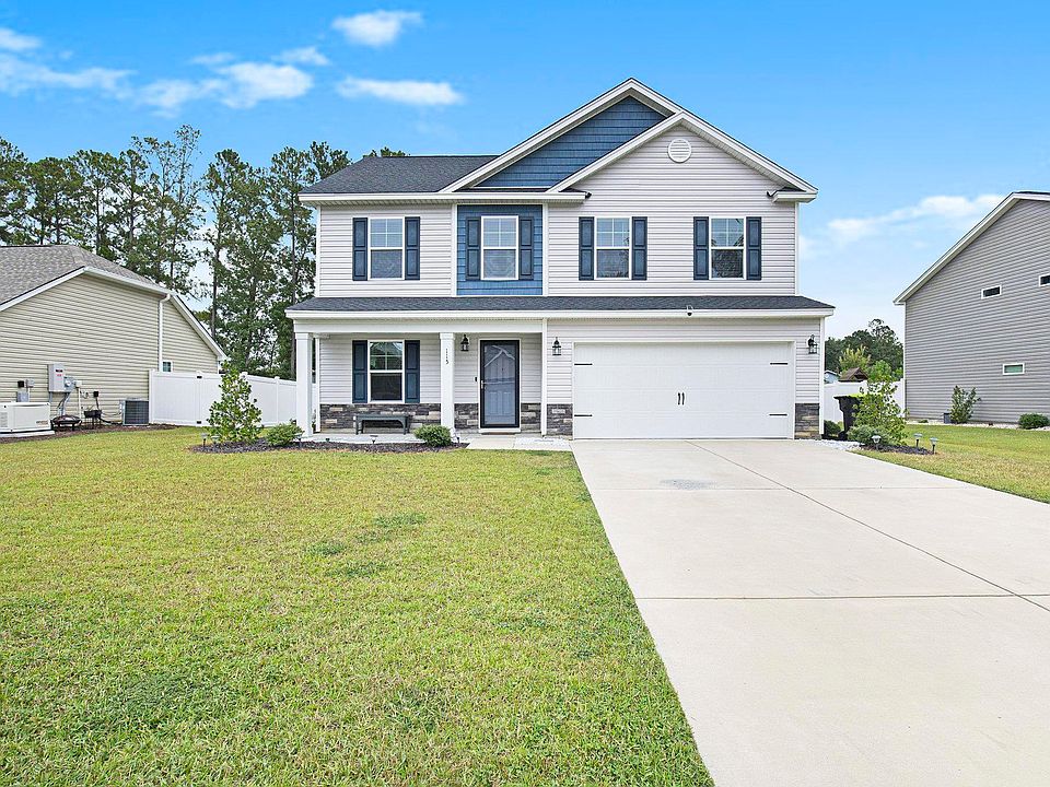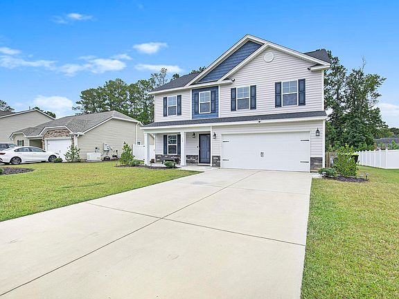 Welcome to this charming Davenport A model Smart home nestled in the Kingston Bluff community! This beautifully crafted 4-bedroom, 2.5-bath home combines thoughtful design with modern comfort, offering the perfect blend of style and functionality. Step inside and be greeted by a bright, open floor plan accented by Galveston Oak luxury vinyl flooring, soft neutral tones, and timeless finishes throughout. The heart of the home is the spacious kitchen, featuring quartz countertops, stainless steel Energy Star appliances, and plenty of room to gather. The inviting family room flows seamlessly into the dining area, making entertaining easy and enjoyable. Upstairs, the spacious primary suite awaits with a tray ceiling, two oversized walk-in closets, and a spa-like ensuite with dual quartz vanities, a garden tub, and a separate shower. Three additional bedrooms, a second full bath, and a convenient second-floor laundry room provide comfort and practicality for everyday living. Enjoy peaceful evenings on your covered porch, or take advantage of the 10x14 insulated shed for extra storage or hobbies. Additional features include exterior Rain Byrd irrigation system, plantation blinds throughout, pre-wired ceiling fan connections in secondary bedrooms, Ring doorbell and a security camera, double driveway, and energy-efficient upgrades such as a 14 SEER HVAC system. Privacy fencing is allowed in this neighborhood. Situated on a quiet street in a quaint neighborhood, this home offers the perfect balance of privacy and convenience. You’ll love being just minutes from the beautiful Grand Strand beaches, world-class golf courses, boat launches, shopping, dining, entertainment, and Historical Downtown Conway. (Only 4 miles to the Red Bluff Waccamaw boat ramp and 18 minutes to the Cherry Grove pier at the Atlantic Ocean.) With easy access to Hwy 22 and Hwy 31, plus nearby hospitals (Seacoast McLeod Health and Grand Strand Regional), everything you need is right at your fingertips. **Ask agent about potential lender incentives. This Kingston Bluff gem is move-in ready and waiting for you to call it home!