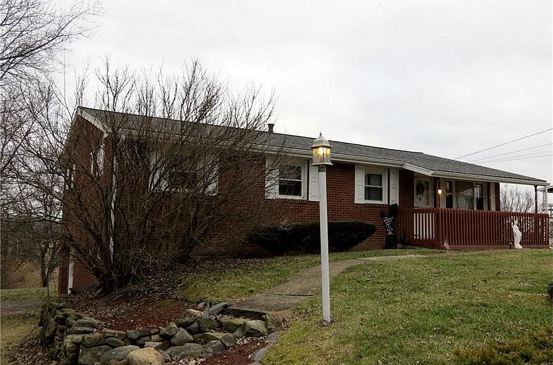 Enjoy easy low maintenance living in this ALL BRICK 4 bedroom 2.5 ranch home! Beautifully refinished original hardwood floors flow throughout the home. An equipped eat-in-kitchen is open to the living area and is recently updated with new laminate flooring & counter tops. Step through the full view sliding glass door onto an alfresco deck with built-in seating and take in a refreshing view that can be seen for miles! The master bedroom features a private attached bath with ceramic tiled shower and rain fall showerhead. Owners attention to upkeep is evidenced in the mechanical updates which include roof, windows, soffit & fascia, furnace, AC & H2O tank all with-in the last 9yrs. The low maintenance brick to grade construction, vinyl windows and soffit & fascia affords easy living. Resting in a rural setting yet only 20 minutes to Cranberry Twp, this home enjoys convenience & quietude - come and see! For further peace of mind, this home comes with a home warranty.
