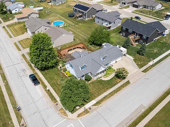 This one-owner, Two Story home, has been lovingly cared for. Located close to the elementary school, and a 12 minute drive to Iowa City. You'll love the space this home has to offer with 4 bedrooms, and a 5th non-conforming bedroom/office in the LL, 3.5 baths, three seasons room with a hot tub, and a family room with a wet bar, perfect for entertaining. For convenience, there are stairs from the garage to the basement. This two story offers a large amount of storage space, both in the basement and attic space above the garage! The garage is oversized, plenty of room for two cars and your extras. There's also a large parking pad big enough for two cars or a camper. The kitchen was beautifully updated in 2017 with granite counters, tiled backsplash, and a breakfast bar. The roof was replaced in 2016. This house sits on a corner lot with mature trees and several plantings, plus a 10 x 10 garden shed. Relax on the front porch or sit under the pergola on the patio. There's currently a deck for a pool if you've had one on your wish list!