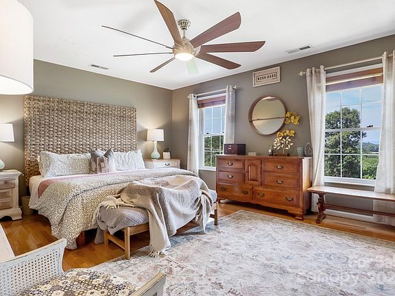 You have to see these breathtaking views for yourself! This beautiful home is pre-inspected and perfectly perched on top of a 1+ acre knoll with 180 degrees views. Here you can enjoy both sunrise and sunsets. Just 15 minutes to RAD! A portion of the rear neighboring property, a lovely farm, is protected by an easement, enhancing privacy & long-range views. The sellers have made many upgrades to the home, including thoughtful renovations the kitchen & master bath, new decking, extensive water filtration system, new privacy fence, re-blown attic insulation, and top of the line mini-split for the garage workshop. The entirely renovated second living-quarters, in the bright and airy basement, has impeccable rental history. Or, use the spacious apartment as the perfect set-up for multi-generational living. Take serene strolls in the mountain view neighborhood or bike popular Old Leicester Highway to RAD! Owner is NC agent/broker.