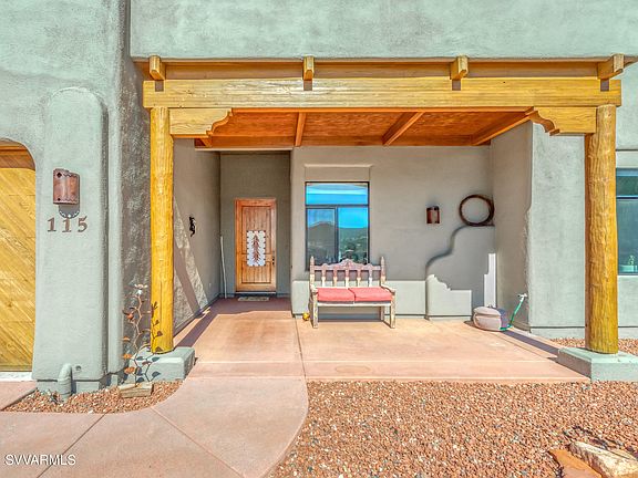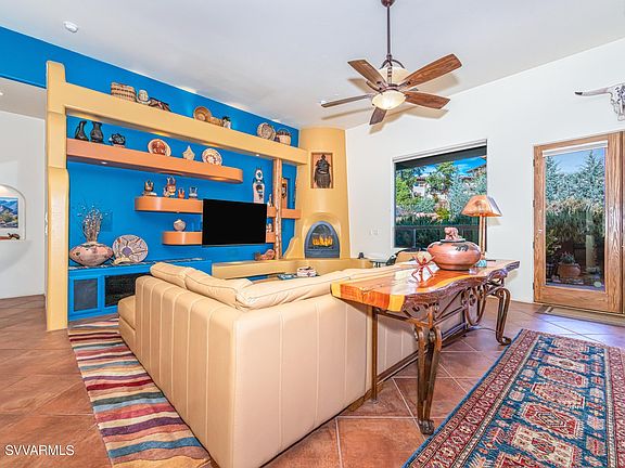 Beautiful 3 Bedroom, plus Bonus/Office/Workout/Flex room, 2.5 Bath, Custom home in gated La Barranca. Open Great Rm/Dining Rm/Kitchen perfect for entertaining family and friends. Split floor plan w gas fireplaces in Great Rm & Master Bdrm. Extra large covered patio along the N side of home leads to a 2nd story viewing/sleeping/observation deck perfect for enjoying the dark skies of Sedona. Custom built art display in Great Rm. . Quiet, private, but close to shopping and restaurants. Private courtyard off Master Bdrm with cement pad wired for a spa. Circular drive. 2nd Bdrm has add'l space for a office/hobby/exercise that could have a separate entrance. Immaculate, beautifully staged. Partial views fr. main level of Lee Mtn & Rabbit Ears. Xtra Lg 4 car garage, w 8' garage doors, 11' ceiling