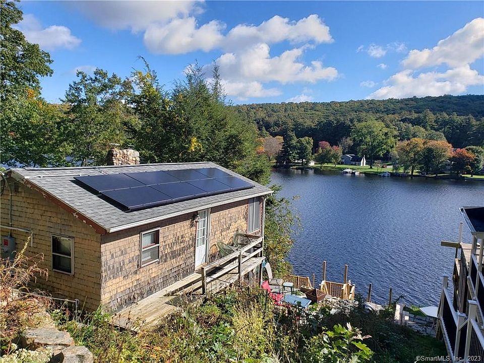 **HIGHEST & BEST DUE - SUNDAY - OCTOBER 22ND BY 5PM PLEASE**LAKEFRONT PROPERTY! Embrace a unique opportunity with this enchanting home, a true chance of a lifetime!! This delightful Ranch is lo, located on a private beautiful Lake, promises year-round enjoyment with its breathtaking views for all seasons. Step inside, and you'll find 2 bedrooms, an open floor plan with all new modern flooring, new mini splits with heat and A/C for your comfort, a brand new architectural 30 year architectural roof with solar panels for cost savings (Owned not Leased), a water filtration system, public sewer and a new deck that leads to the waterfront, that will give you year-round enjoyment. This lakefront home offers a private beach for lake owners, allows motorboats, kayaking, fishing, and swimming for all your friends and families to enjoy. Don't miss this opportunity to own this special lakefront property. fingers. It's not just a home; it's a lifestyle filled with memorable moments, incredible vistas, and the tranquility of waterfront living. Your dream retreat is waiting for you!