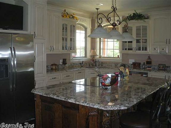 Don't miss tis outstanding custom build home, sitting on your little piece of waterfront heaven. The trim work and molding in this house is unbelieveable. The kitchen is a chefs dream, with oversized center island, granite counter tops, double oven, custom cabinets that go to ceiling and a walk-in pantry. Master bath has his and hers deluxe vanities, step up tub, and a 5x10 walk in shower. Huge covered decks, central vac system, hand scraped floors, 30x40 shop with 3 garage doors sitting on 2.57 acre.