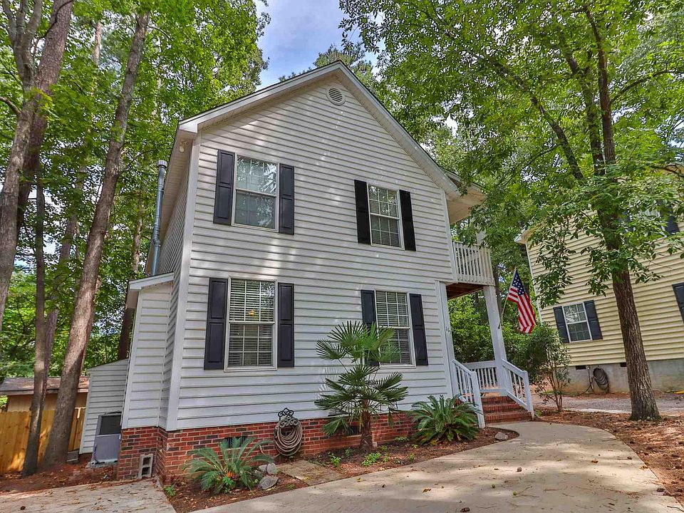 Don't miss out on this gorgeous Charleston style home located in an amazing location! This home offers plenty of charm with three bedrooms and 2.5 baths. The great room features lots of windows with great natural light and a fireplace. The kitchen, dining room and guest bath complete the first floor. The kitchen is immaculate with brand new gleaming countertops, white cabinets and tons of space! The dining area is off of the kitchen and features built in cabinets with new countertops! The beautiful stairway leads to three bedrooms with brand new carpet! The guest rooms offer plenty of closet space and share a guest bath. The master bedroom offers a tray ceiling and a private balcony. The master bathroom is spacious with dual vanities and tile floor. The master closet is large and offers plenty of space! Outside of this home you will find a storage closet and a huge storage shed complete with electricity and a window unit for heating and cooling. A new privacy fence was just installed. 115 Landing Drive has it all and offers a location that can't be beat- come tour this beautiful home today!
