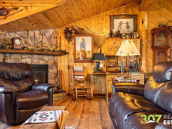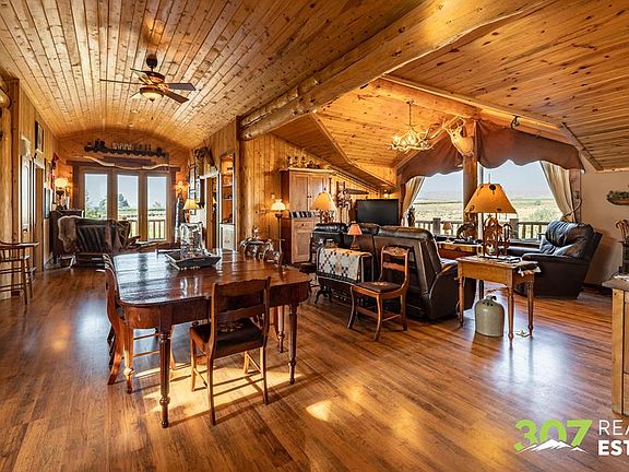 Beautiful Horse Property on 14.57 Acres with 8+ Irrigated acres and fenced pasture. This home has beautiful custom log interior with views of Heart Mountain that you just can't beat! Large garage with finished equine stalls and wash bay. Located Between Cody and Powell.