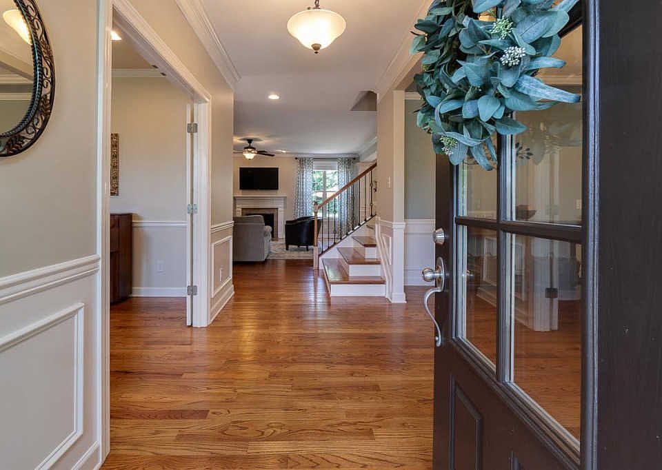 Unsurpassed value less than 2 miles to interstate. Beautiful sand + Finish Hardwood floors on main level, hardwood stairs trends w/wrought iron spindles. Generous sized kitchen with gas cooktop, double oven,additional cabinets with desk area. Large bdrms w/bathroom access & walk in closets. Master bath w/tiled shower, frameless door & large walk in closet. Enjoy the neighborhood clubhouse, pool, playground and beautiful landscape throughout the neighborhood.